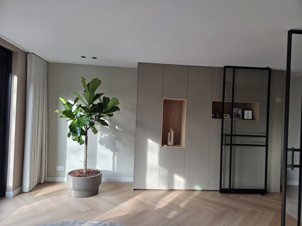 Planten vullen niet alleen de ruimte. Ze geven karakter en tillen het interieur naar een hoger niveau. Voor het beste resultaat is het belangrijk dat planten, potten en interieur goed op elkaar zijn afgestemd, net zoals ik mocht doen voor dit fantastische project. Belangrijkste spelregel? Durf! Met grote planten maak je echt een statement. Lees verder en ontdek welke keuzes ik heb gemaakt: